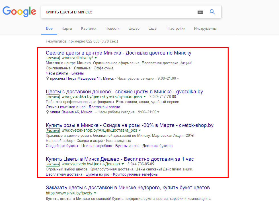 объявлениях будут предложения тех кто рекламирует именно цветы. Для